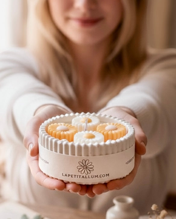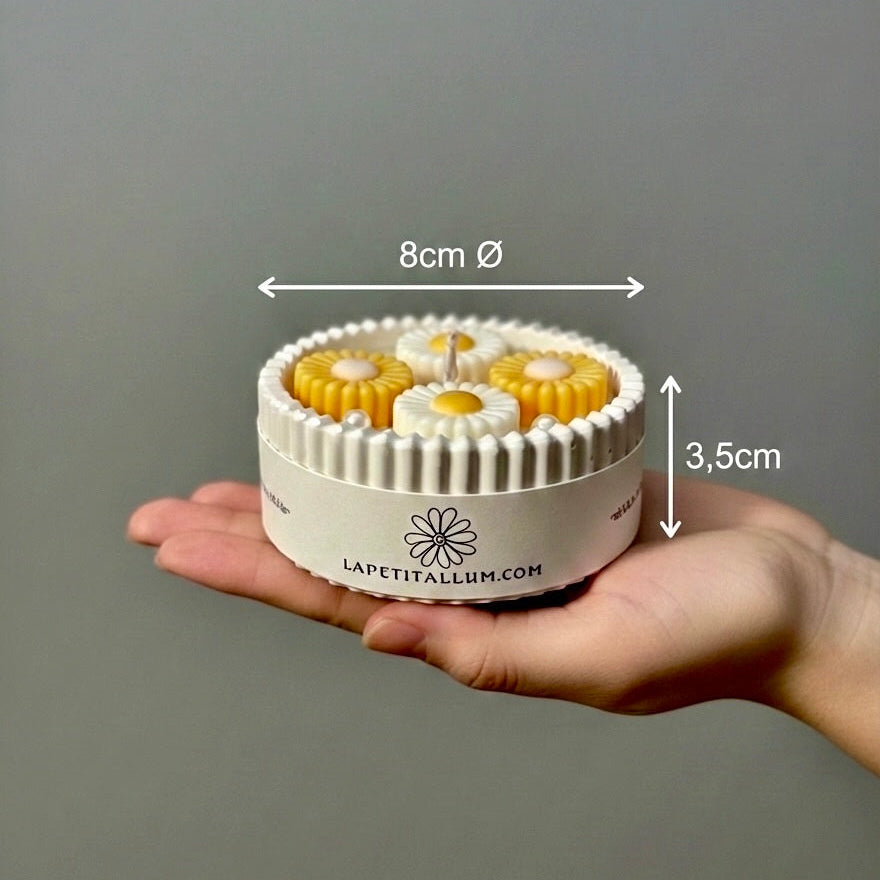 Nuestra velita mini Daisy es como una pequeña luz que florece.
