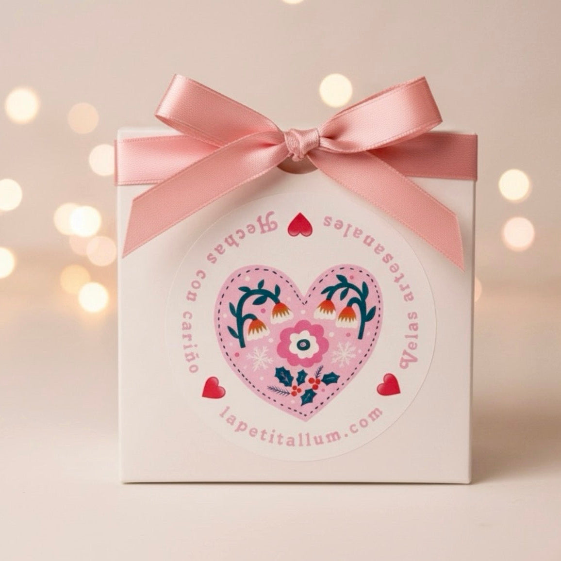 Esta velita va envuelta individualmente en una cajita kraft con lazo.